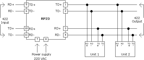 RS-485/RS-422 Repeater RP23 is designed as a robust repeater for industrial applications where galvanic isolation is important. It can be used to extend both the distance and number of nodes on RS-485 (2-Wire) and RS-422 (4-Wire) network. Galvanic Isolation helps eliminate noise and protects equipment from destructive transients found in industrial application.